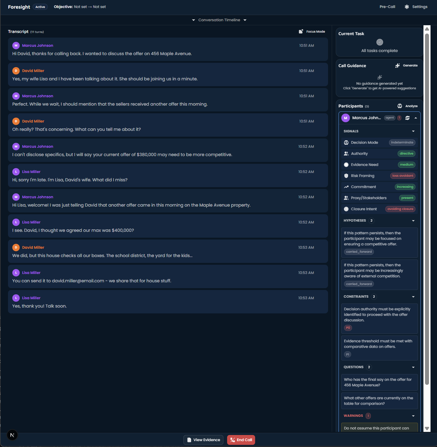 FORESIGHT isn’t a CRM. It’s not analytics after the fact. It’s a real-time intelligence layer that understands how conversations are unfolding, not just what’s being said. While most tools track activity, FORESIGHT tracks behavior. Tone shifts. Hesitation. Authority changes. Emotional momentum. It surfaces what matters while it still matters, so reps aren’t guessing and managers aren’t reacting too late. This isn’t reporting. It’s awareness, in the moment decisions are made.